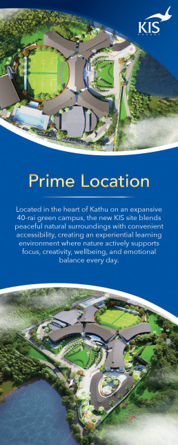 The new KIS campus is located in the Kathu Area, spanning an expansive 40-rai site surrounded by natural greenery. Thoughtfully tucked away in a peaceful and secluded setting—yet conveniently close to the main road—the location offers accessibility without sacrificing tranquillity.